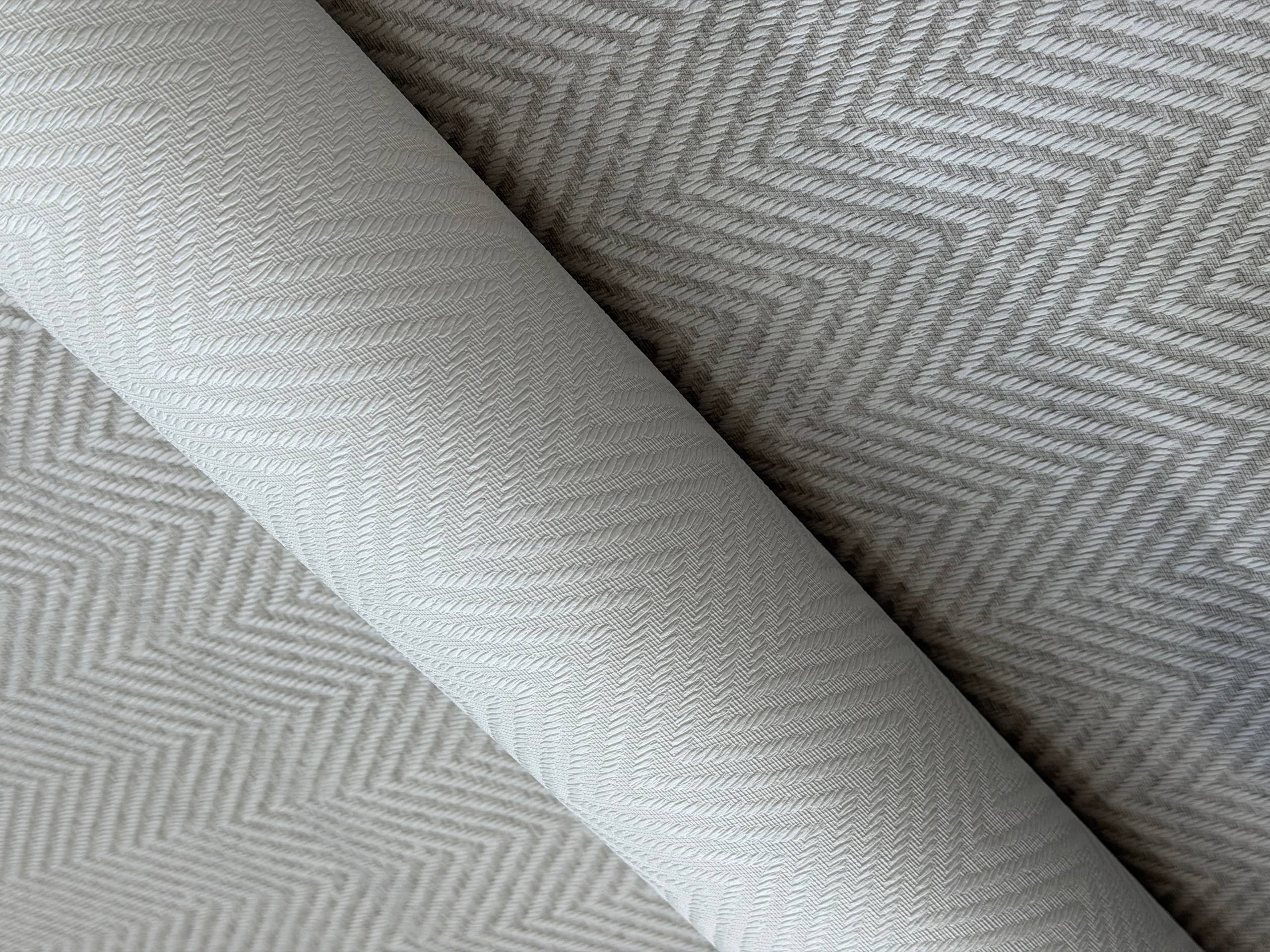 Геометрический орнамент в стиле элегантного шеврона придаёт интерьеру динамику, сохраняя при этом ощущение спокойствия и гармонии. Тонкая фактура имитирует дорогую ткань и наполняет пространство атмосферой уюта и статуса.