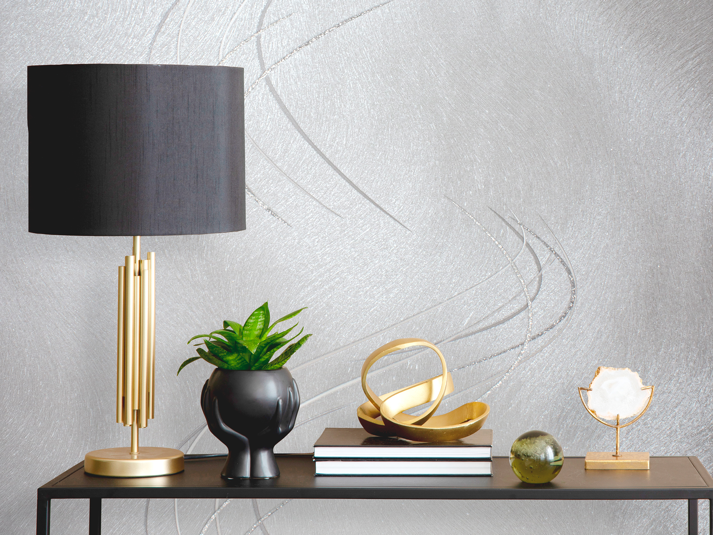 Лаконичный абстрактный рисунок с зашифрованной и любимой нами цифрой 8 и акцентным сияющим фоном придаст интерьеру особый шарм и индивидуальность. Благодаря потрясающим металлизированным эффектам и объемной структуре визуально достигается глубина и расширение пространства.